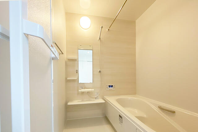 - 浴室暖房、浴室乾燥機、オートバス、追焚機能、シャワー付洗面化粧台、温水洗浄便座