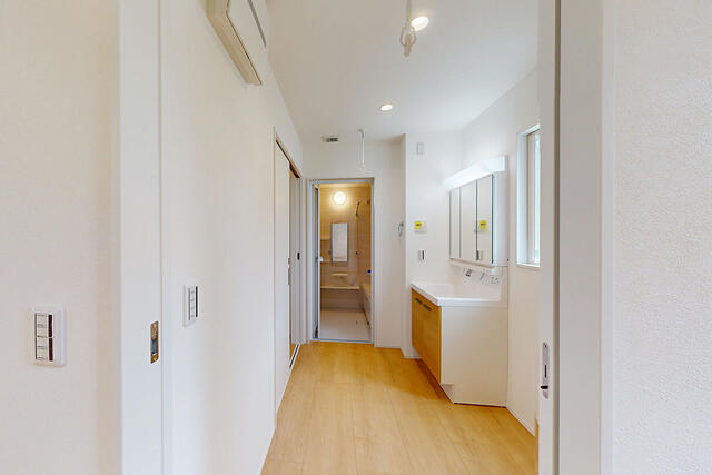 - ウォークインクローゼット、エアコン2台以上、クローゼット、モニター付インターホン、カードキー、ダブルロックドア、省エネ給湯器、全居室フローリング、室内物干し、上水道、下水道、電気、側溝、庭、照明器具、火災警報器(報知機)、複層ガラス、Low-E ガラス